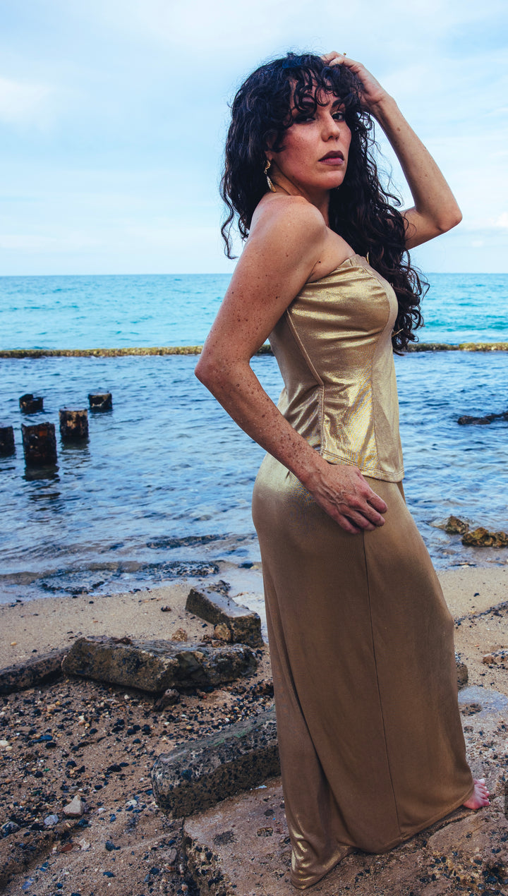 The Kate Set — Straight-Neckline Top & Long Skirt — is the perfect choice for a sophisticated, elegant look.