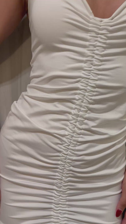 El vestido Praia es una pieza elegante de verano sin manga que lleva su protagonismo al recogido del centro, que genera un drapeado hermoso que hace resaltar tu figura y llevar tu look a un nivel superior, tiene tirantes graduables y un escote muy favorecedor.